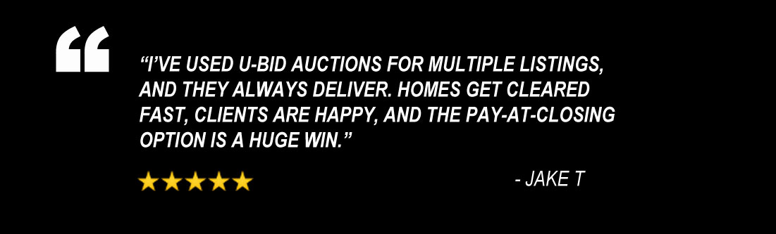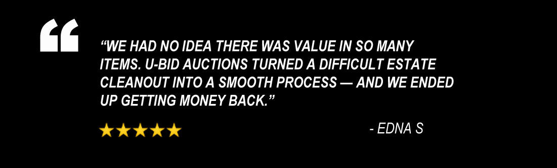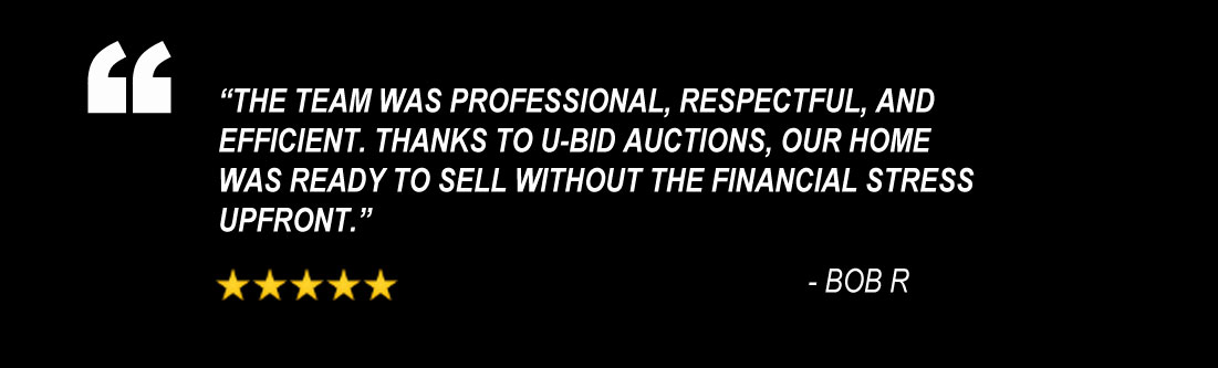U-Bid Auctions provides professional home cleanouts with no upfront costs. We clear the home, auction what we can, and the labor and dumpster fees are paid after the property sells — helping sellers move forward without financial stress.